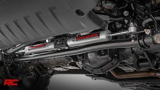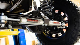 Стоковый стабилизатор рулевого управления имеет слабую конструкцию, хотя играет важную роль в управляемости вашего внедорожника. Стабилизатор от Rough Country поглощает вибрации и толчки от неровностей и препятствий на дороге или на бездорожье. Rough Country предлагает несколько вариантов модернизации, включая одиночную или двойную установку.