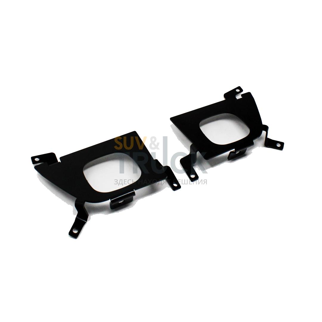 Комплект кронштейнов для монтажа противотуманных фар на заводские точки крепления автомобиля Chevrolet Silverado 2019 года выпуска. Материал - прочная сталь с порошковым покрытием черного цвета.