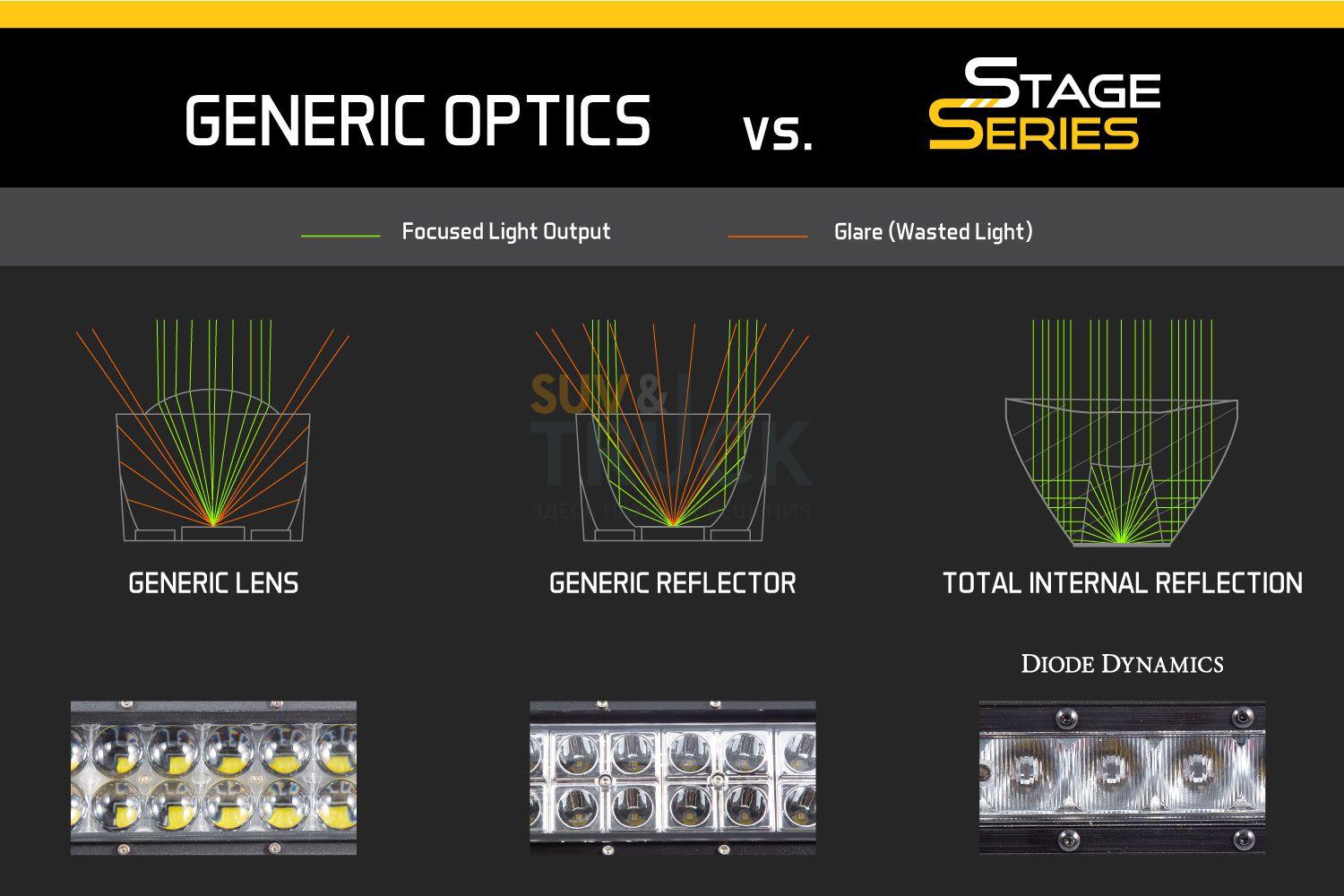 Светодиодная балка, оснащенная TIR-оптикой с полным внутренним отражением и особой линзой. Используется как водительский свет с углом рассеивания луча 20°x8°. Не подходит для дорог городского пользования.