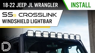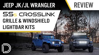 Комплект с кронштейнами для монтажа янтарных LED-балок SS5 Pro CrossLink над лобовым стеклом Jeep JL Wrangler, Combo