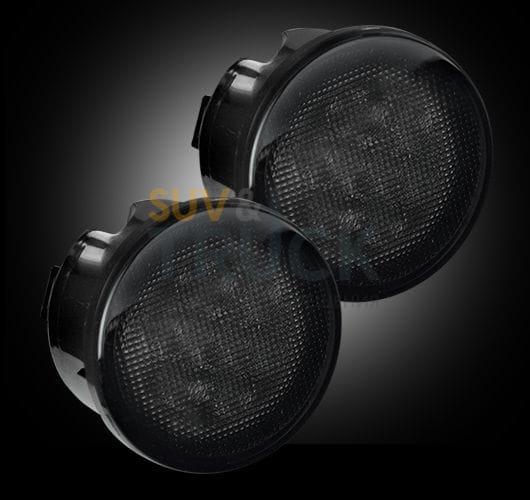 Jeep 07-17 JK Wrangler Round Front Turn Signal Lenses with White LED's Located Under Front Headlights - Smoked Lens