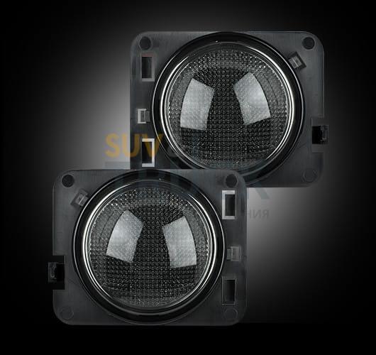 Jeep 07-17 JK Wrangler Round Front Fender Lenses with Amber LED's Located on Front Side Fender - Smoked Lens