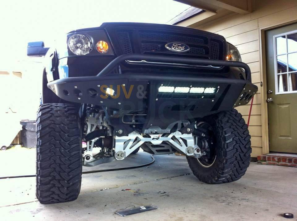 2004 - 2008 Ford F-150 Standard Front Bumper with Stealth Panels with Winch and 40" light bar mounts and 20" light bar mount in skid and 4 dually mounts on outer in Hammer Black with Satin Black panels
