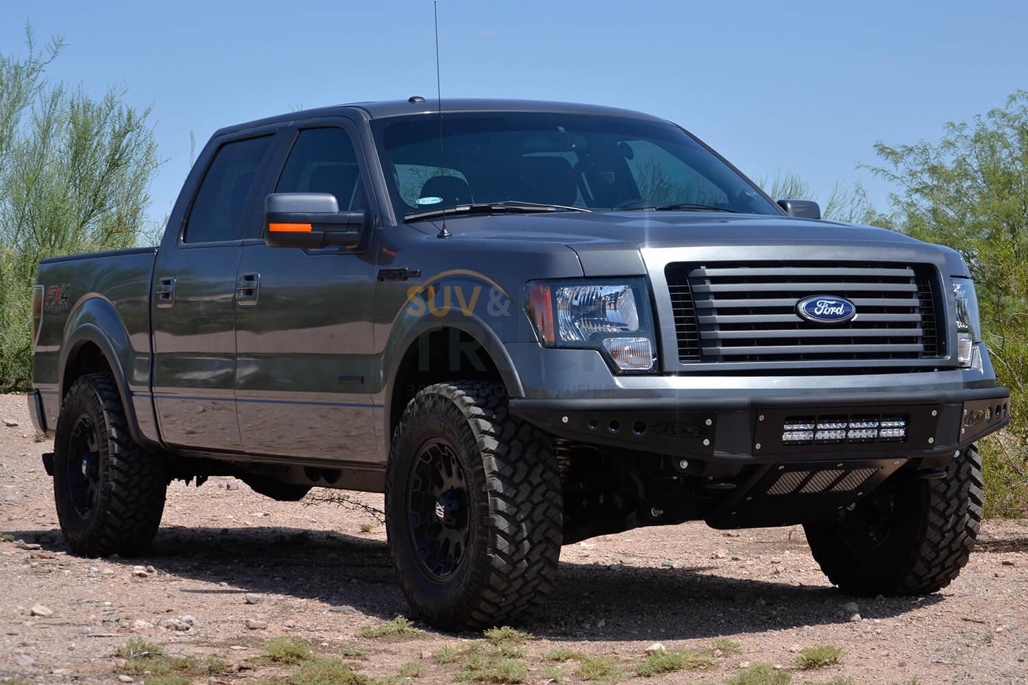 2011 - 2014 Ford Ecoboost F-150 Venom Front Bumper with stealth panels and 20" light bar mount in skid with vents for intercooler in Hammer Black with Satin Black panels