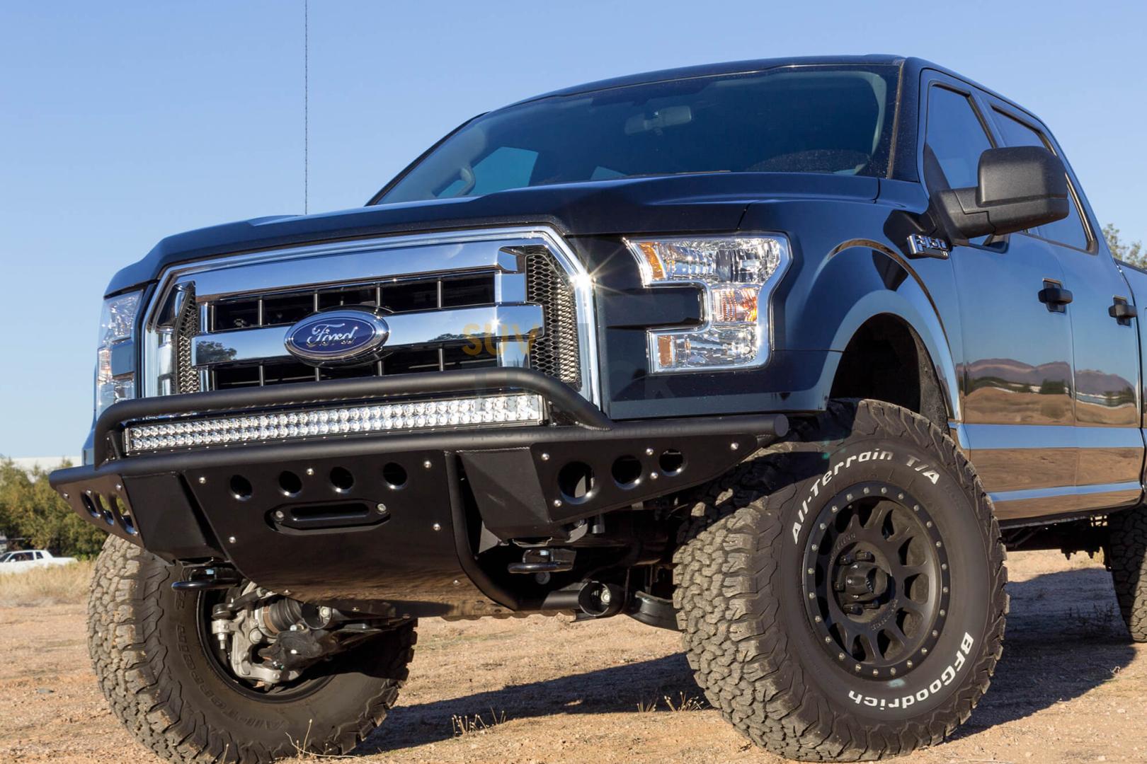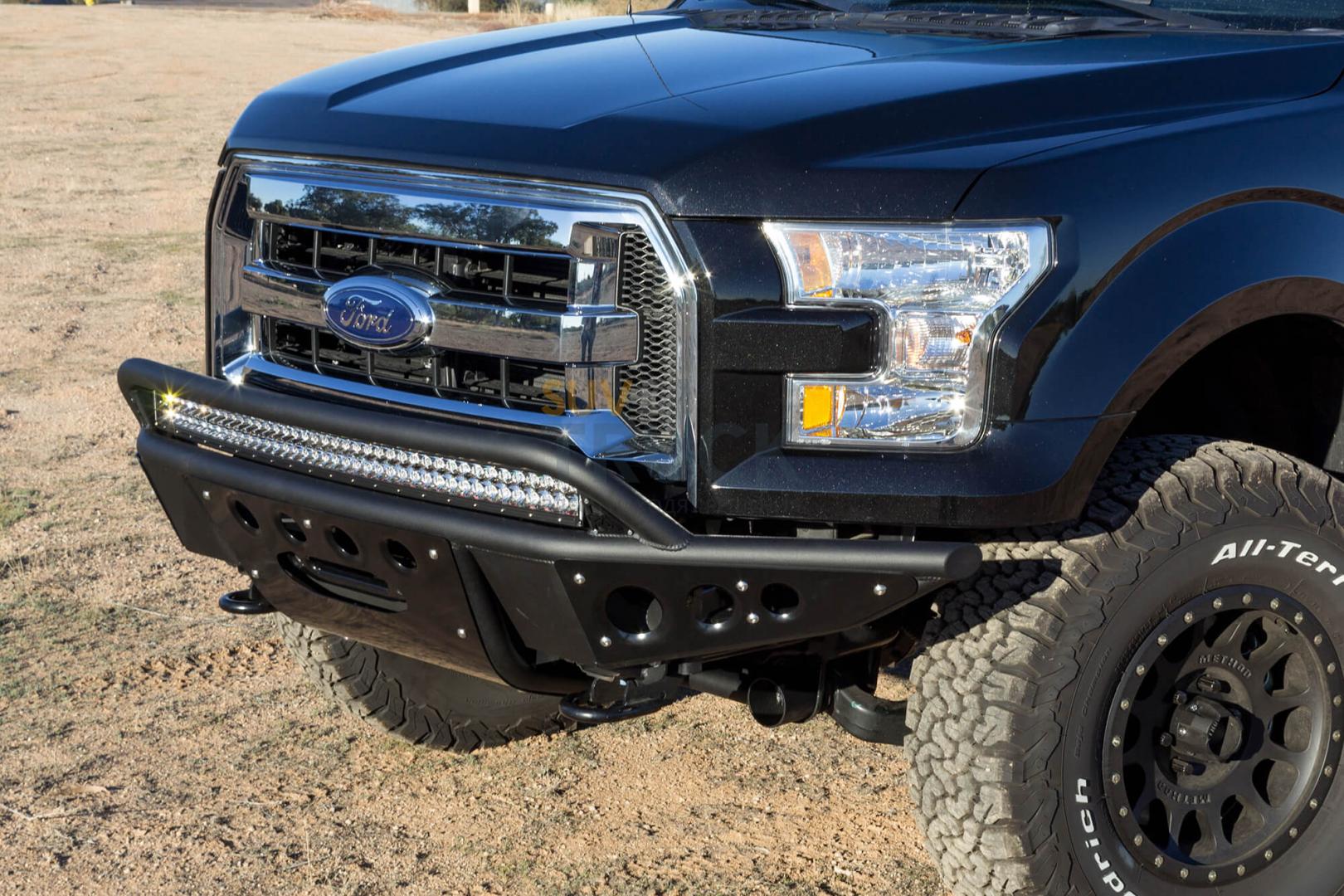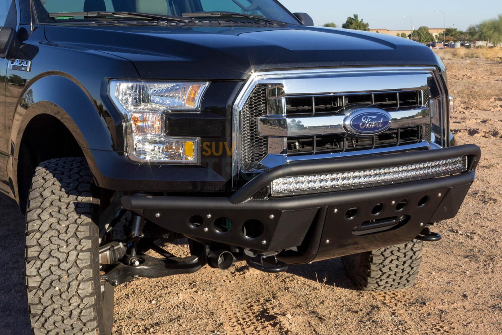 2015 - 2017 Ford F-150 Stealth Front Bumper with stealth panels and 40" light bar mount with vents for intercooler and duallys in Hammer Black with Satin Black panels