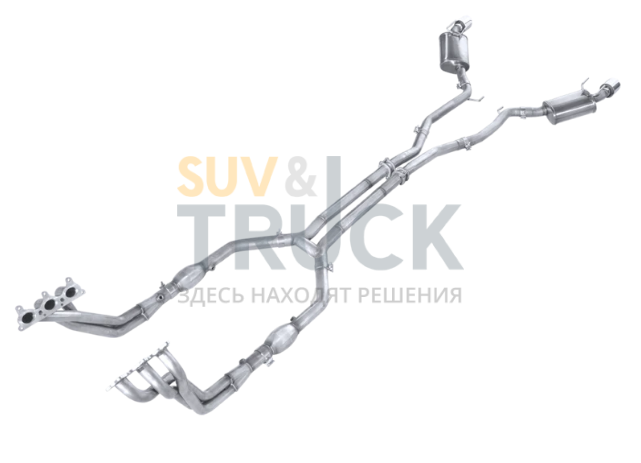 Выхлопная система выполнена из нержавеющей стали 304 высшего качества и не требует доработки во время установки. Фланцы вырезаются на станках с ЧПУ и, благодаря высокому качеству и идеальным размерам обеспечивают плотное прилегание и не дают перекосов. Все необходимые для монтажа элементы входят в комплект поставки.