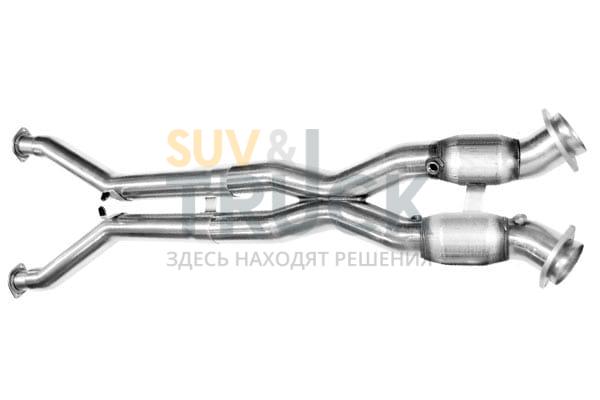 X-Pipe с ультра производительными катализаторами Green Cat. Совместимы с заводской выхлопной системой. Рекомендуется устанавливать с коллекторами Kooks на автомобили с типом двигателя Ford 4.6L 2V. Используется в рамках тюнинга выхлопной системы, что значительно улучшает ее производительность и эффективность. Материал - нержавеющая сталь марки Т304.